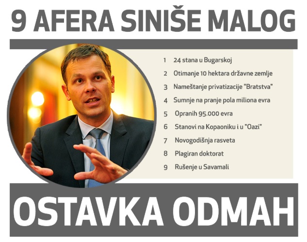 Iako smatramo da je pitanje plagiranja doktorata izuzetno važno i da baca sramotu na Univerzitet, da ponižava trud i zalaganje akademske zajednice i da nanosi štetu ministarstvu finansija i gradu Beograd na čijem se čelu nalazi ili nalazio Siniša Mali, radi se samo o jednoj od afera u koju je on umešan. Zato smatramo da je nedopustivo da Mali obavlja najviše državne funkcije i zahtevamo njegovu ostavku i procesuiranje.