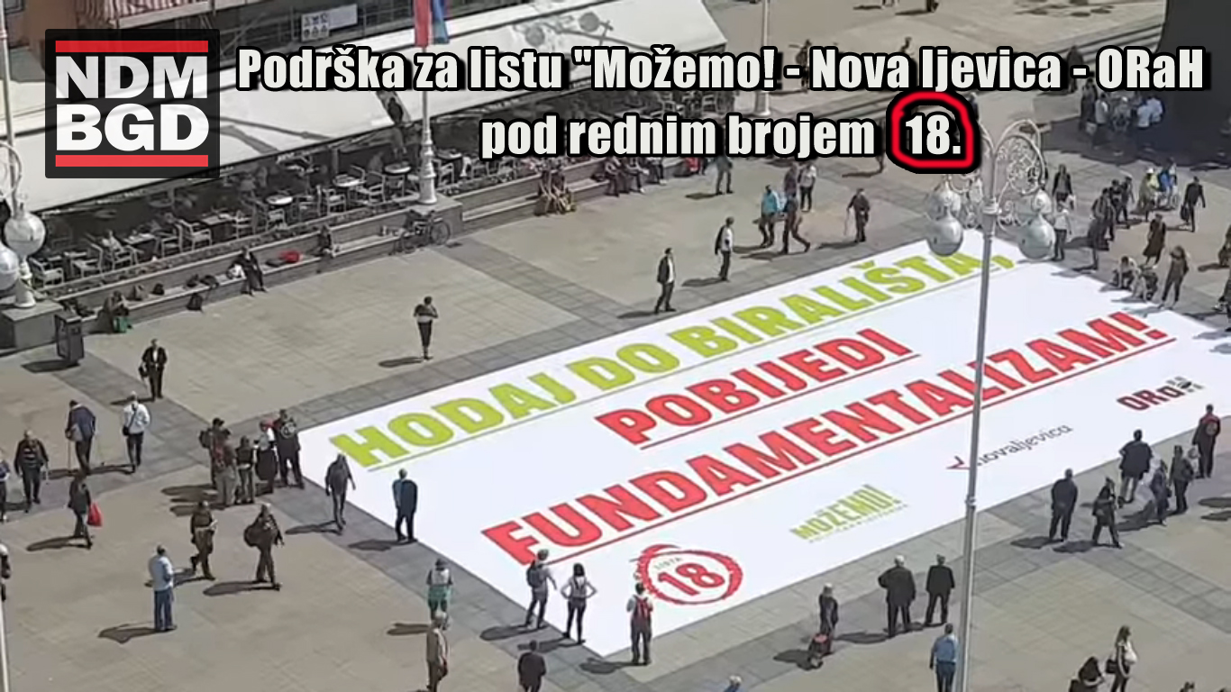 Уколико имате право гласа у Хрватској, позивамо вас да у недељу 26. маја на изборима за Европски парламент подржите листу “Можемо! – Нова љевица – ОРаХ, под редним бројем 18.