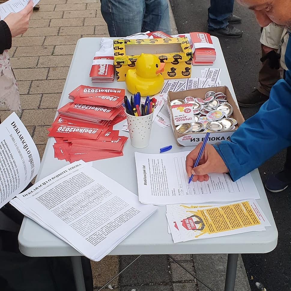 Na mobilnom štandu inicijative Ne davimo Beograd vladala je gužva, jer su okupljeni mogli da potpišu mobilizacijski list kojim se prijavljuju za učešće u aktivnoj kampanji bojkota izbora. Za one koji žele da se uključe, otvoren je sajt www.bojkot2020.org preko koga će inicijativa Ne davimo Beograd pozivati volontere/ke i aktiviste/kinje. Borba za slobodnu i demokratsku Srbiju počinje.