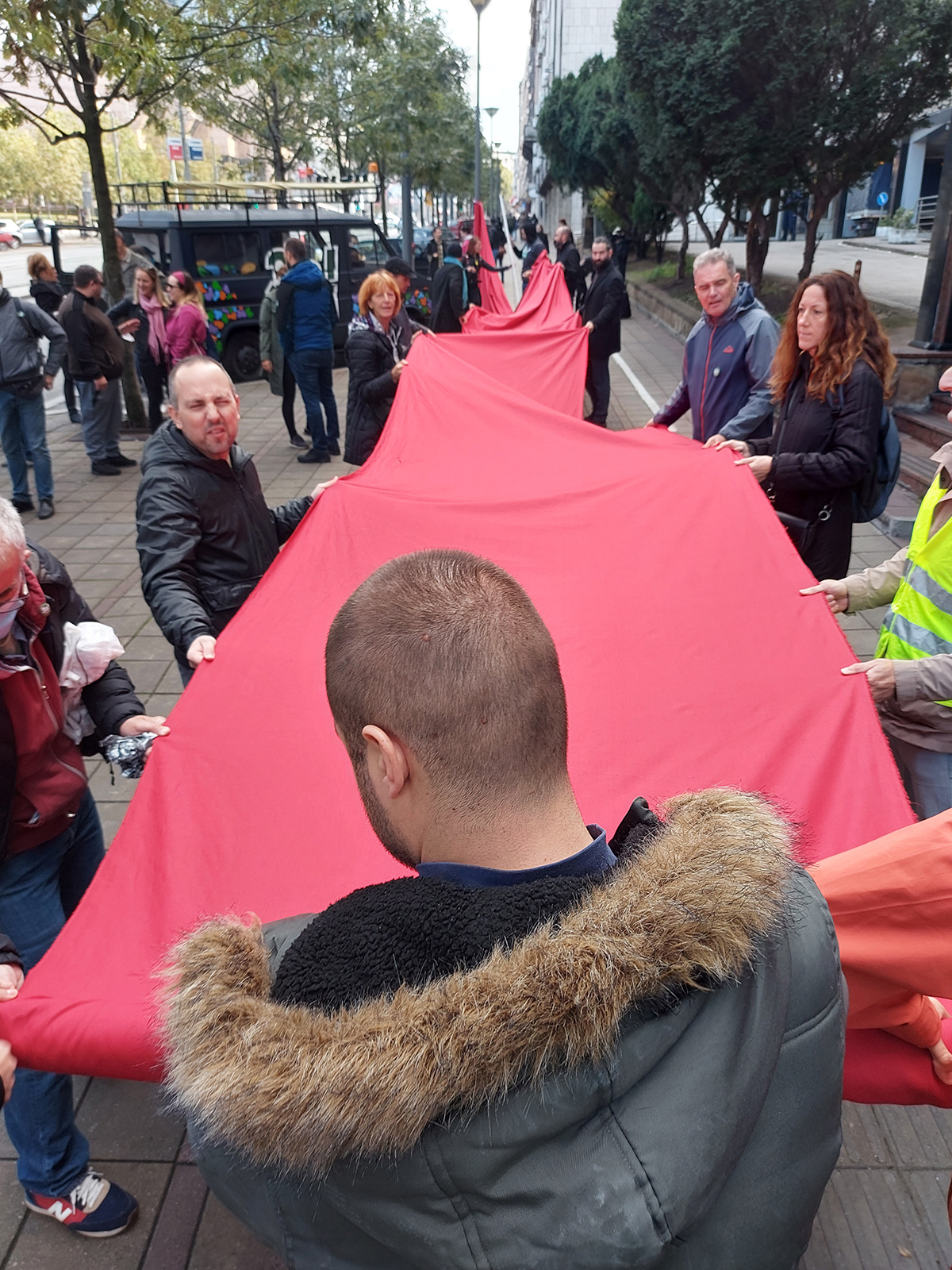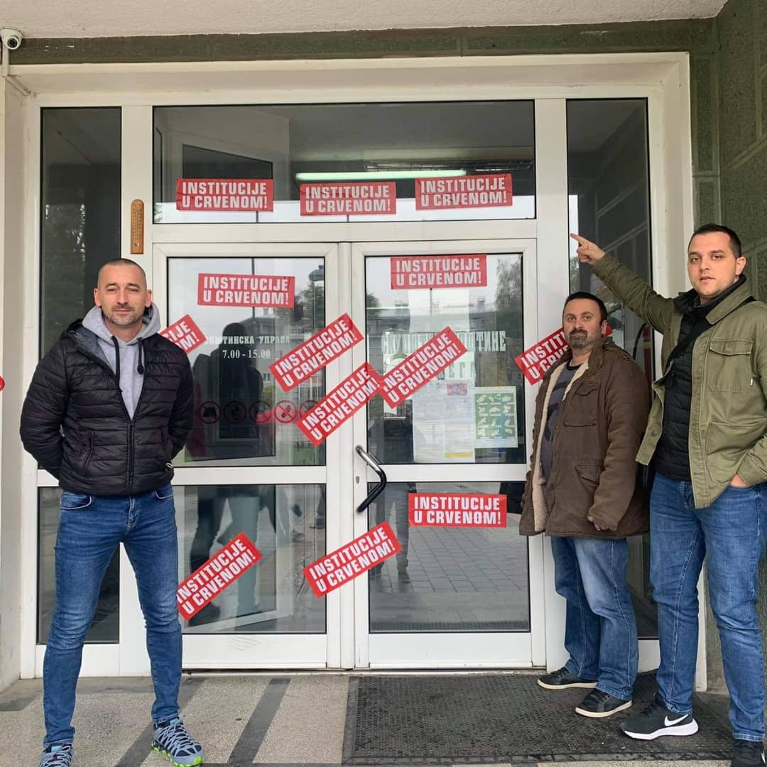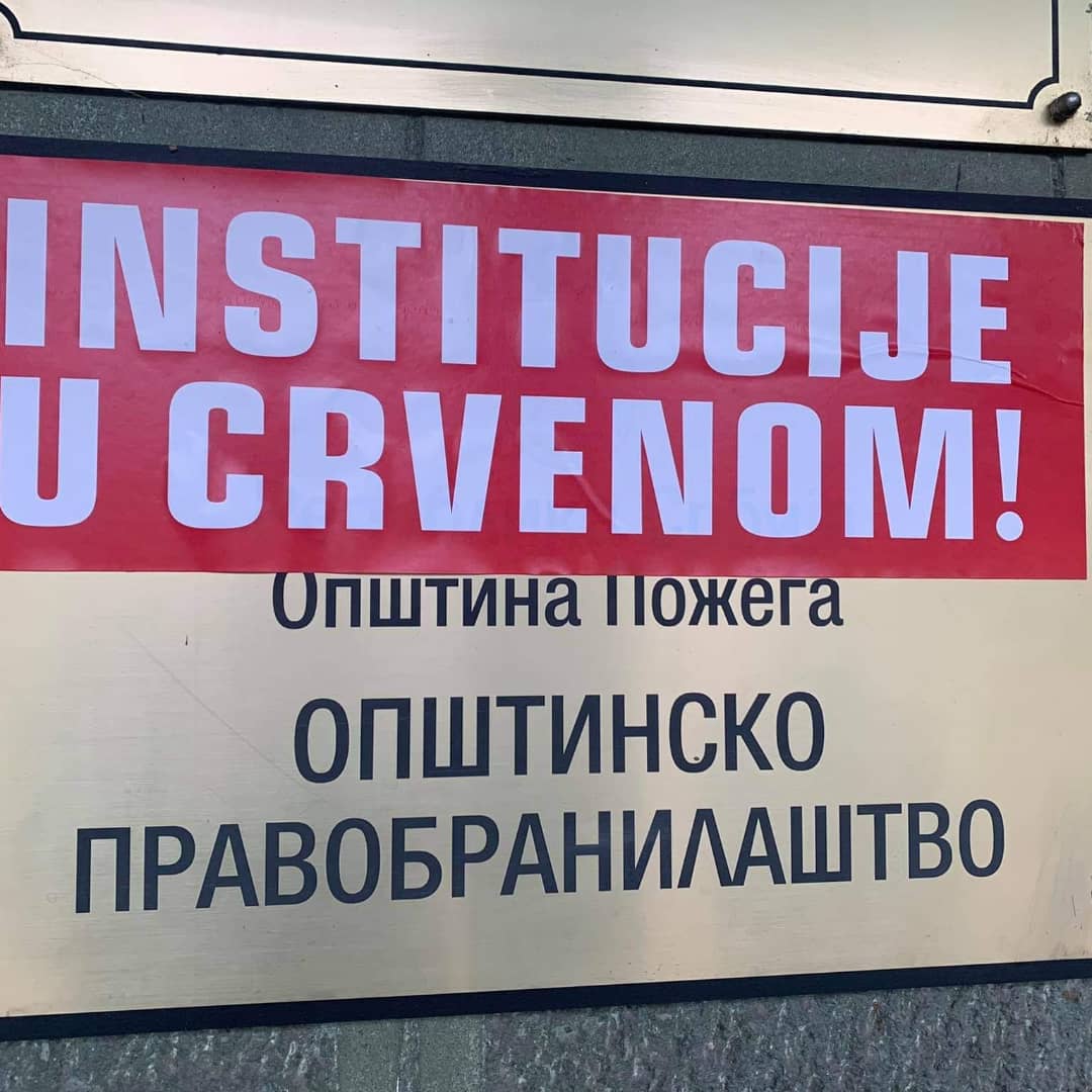 Za vreme održavanja Protesta protiv državnog kriminala, na koji je pozvala zeleno-leva grupacija organizacija, u 23 grada širom Srbije, organizovana je akcija “Pravosuđe u crvenom” kojom smo poručili da je došao poslednji trenutak, crveni alarm, da se naše društvo obračuna sa kriminalcima na najvišim državnim funkcijama. Aktivisti su se okupili i istakli crvenu boju ispred tužilaštava, sudova, opština i drugih institucija koja u u njihovom gradu simbolizuju nepravdu i bezakonje.