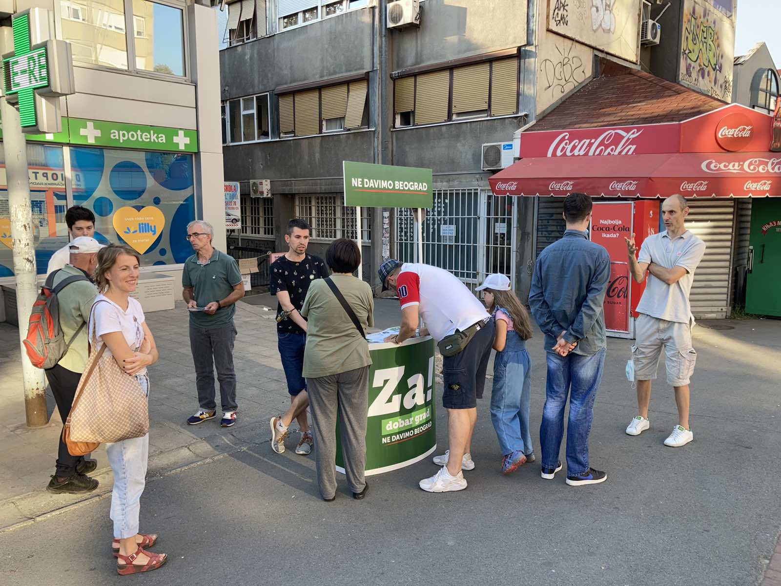 Od Lazarevca i Obrenovca, preko Voždovca, Čukarice, Rakovice, Zvezdare i Palilule, do Novog Beograda i Zemuna, ali i u centralnim gradskim opštinama poput Starog grada i Vračara, aktivisti Ne davimo Beograd razgovarali su sa ljudima o njihovim životnim problemima, o divljoj gradnji, sečama šuma, uzurpaciji obale, korupcionaškim projektima režima. Ali ono što je još važnije od prepoznavanja štetnih pojava u društvu, razgovarali smo o planovima za rešavanje nagomilanih problema. Aktivisti su građane upoznali sa načinima za unapređenje javnog saobraćaja, našim rešenjima za buku, merama koje predlažemo za poboljšanje kvaliteta vazduha, o važnosti energetske tranzicije sa fosilnih goriva i mnogim drugim politikama za koje se zalažemo.