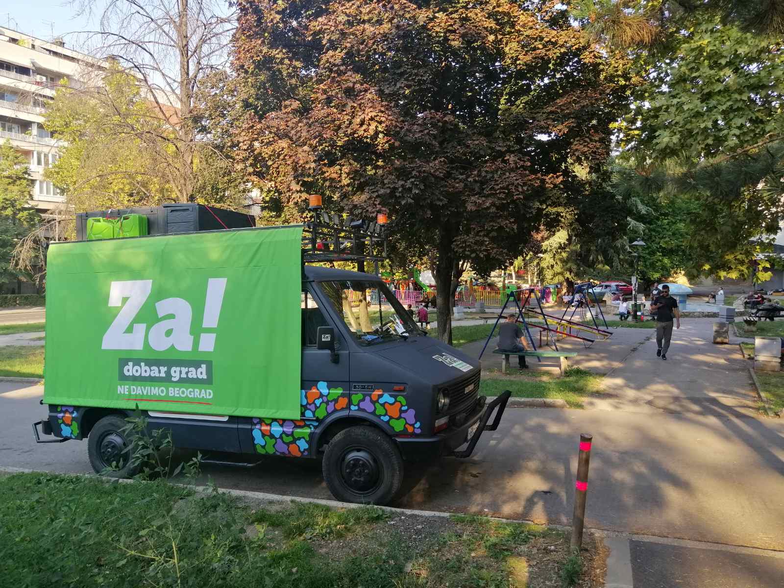Pažnju građana posebno je privlačilo naše specijalno vozilo “Zastava na točkovima” koje je posetilo većinu štandova. Ovaj preuređeni kombi opremljen je svim potrebnim materijalom, ozvučenjem, stolicama, svetlom, platinum za projekcije, a može služiti i kao pokretni billbord, tako da se posete raznim krajevima Beograda mogu lako organizovati.